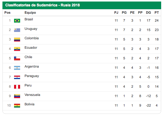 Brasil humilló a la selección: así quedo la tabla rumbo a Rusia 2018