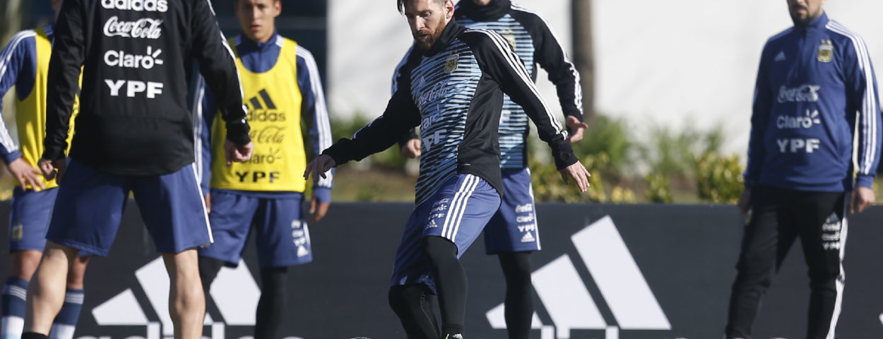 Después de realizar junto al grupo una breve entrada en calor sobre una de las mitades del campo, el capitán argentino se dirigió al otro sector para formar parte de un ejercicio de fútbol reducido que lo tuvo como comodín.