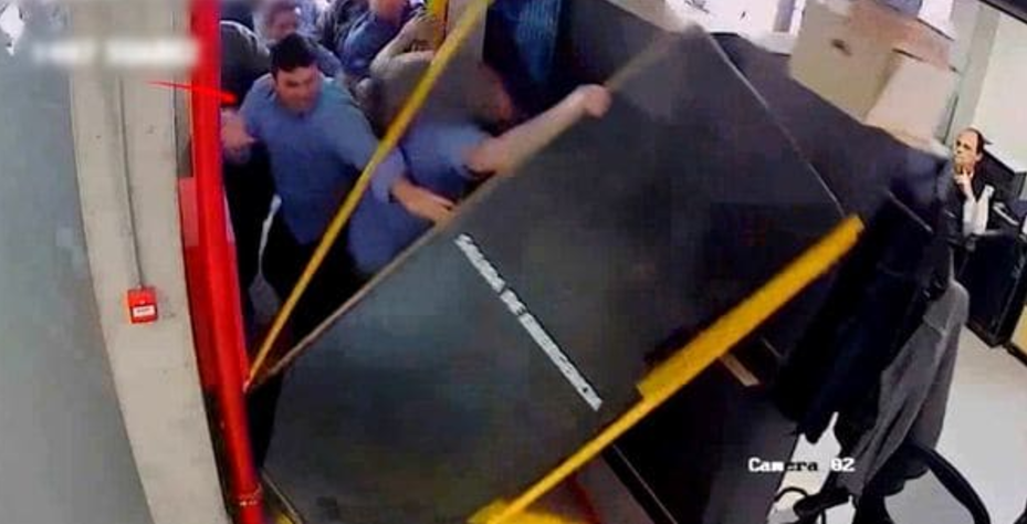 En las grabaciones de las cámaras de seguridad se puede ver cómo los trabajadores agredieron a algunos empleados administrativos de la compañía y atacaron a un compañero que intentó sacar un coche a la calle en medio de un paro de actividades.