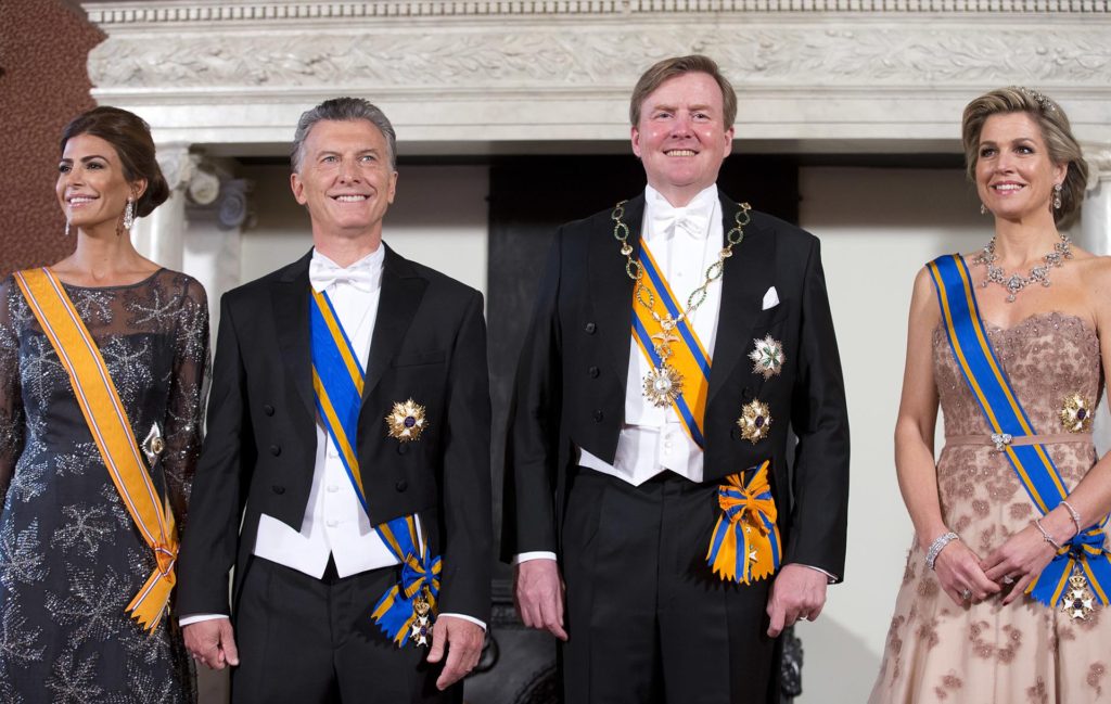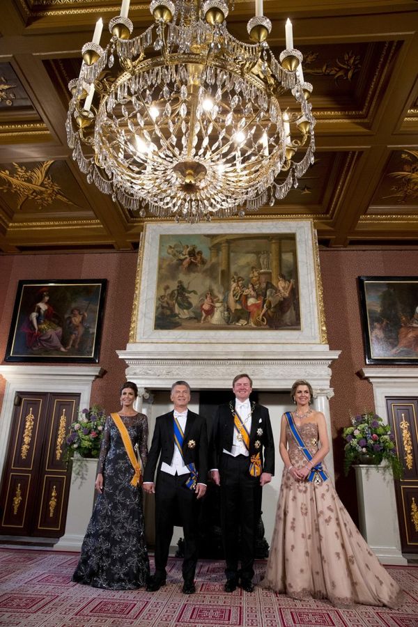 El primer mandatario y su mujer gozan de un tratamiento exclusivo en los Países Bajos por la excelente relación que tienen con la reina, la argentina Máxima Zorreguieta, quien también hizo gala de sus dotes fashionistas con un vestido en color nude.