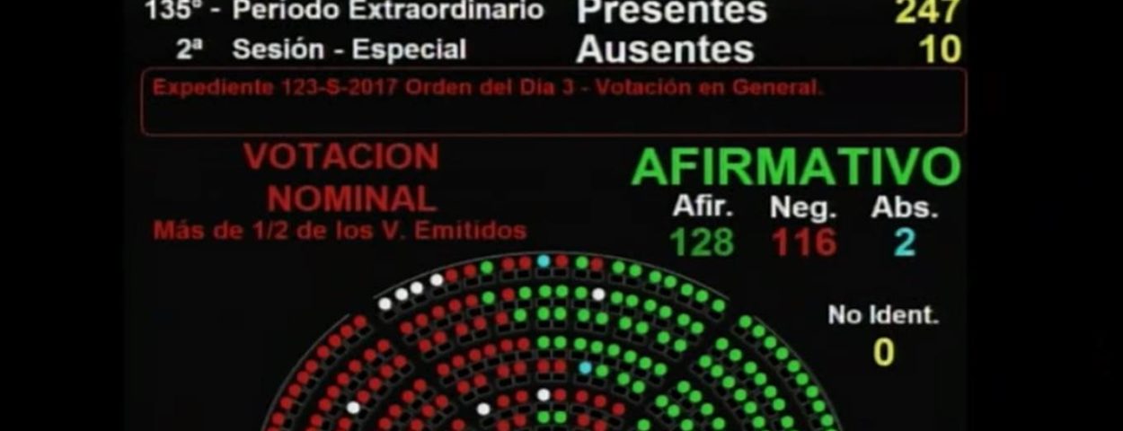 La votación tuvo lugar a las 7:13 y a las 7:20, por pedido del presidente del interbloque Cambiemos, Mario Negri. Luego, la sesión de la Cámara baja pasó a cuarto intermedio hasta las 17, cuando se debatirá la reforma tributaria.