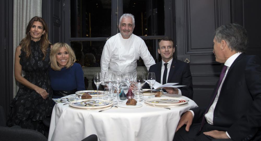 Tras el encuentro en el palacio gubernamental, Macron y su esposa agasajaron a Macri y a la primera dama, Juliana Awada, con una comida de honor en el restaurante Guy Savoy del Hotel La Monnaie.