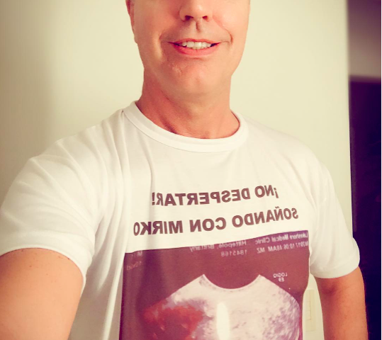 Allí, el conductor lució una remera con la leyenda «¡No despertar! Soñando con Mirko…», y la ecografía de su bebé.