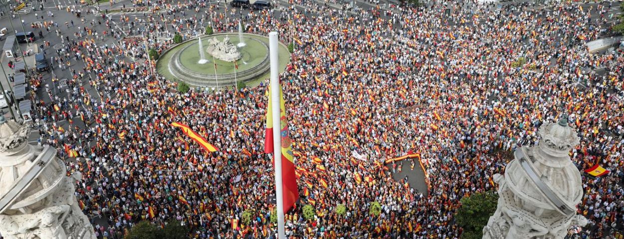 Bajo el lema "Catalunya és Espanya. Democracia, futuro y libertad", los manifestantes avanzaron hasta la plaza Sant Jaume al grito de "No votaremos".
