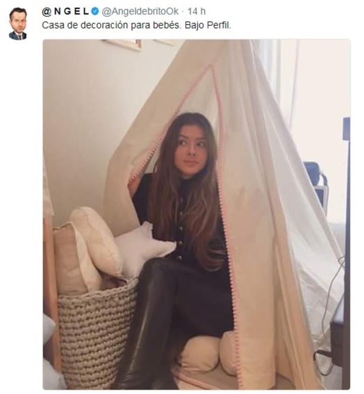 Ayer, cerca de la medianoche, el conductor publicó un tweet similar donde mostraba una foto de la actriz en una carpa para niños y la acompañó con el epígrafe: «Casa de decoración para bebés. Bajo perfil».