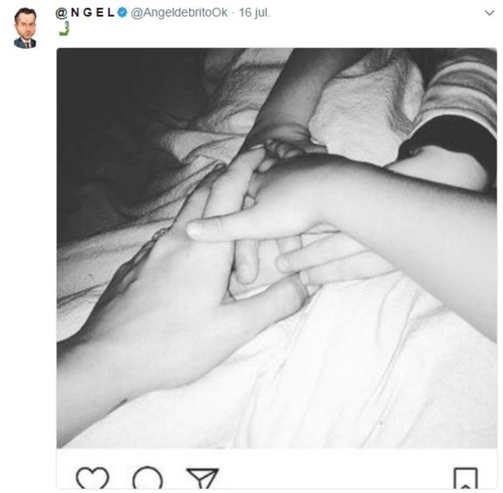 Todo comenzó el domingo pasado, cuando una seguidora advirtió a Ángel de Brito sobre una foto de La China: «Ángel, la China Suárez subió una foto en la que se notaba que estaba sentada en un sillón y parecía que tenía las manos de los nenes en su panza. Subió esa foto con un corazón y la eliminó al rato».