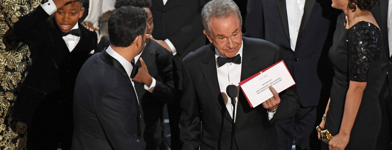 En lugar de darle el que decía «Mejor película», Cullinan cedió a Warren Beatty uno que correspondía al honor previo, el que le otorgó la estatuilla a Emma Stone como Mejor Actriz.