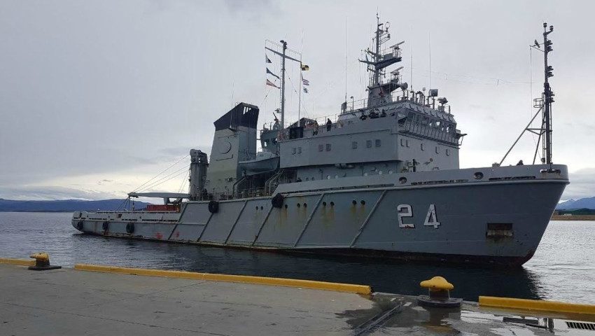 El ARA Islas Malvinas zarpó esta madrugada del puerto de Comodoro Rivadavia hacia la zona de búsqueda, con el Panther Plus a bordo, el cual permitirá una exploración submarina de hasta 1000 metros de profundidad.