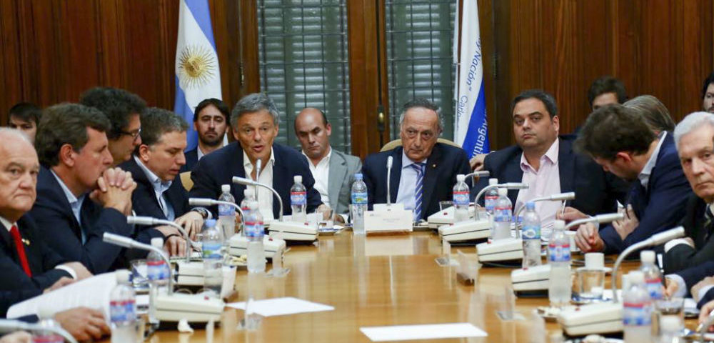 El «tour» de ministros del Gobierno para hablar de las bondades de los proyectos de ley Reforma Laboral, Tributaria y la desburocratización del Estado, llevó al ministro de Trabajo, Jorge Triaca; de Producción, Francisco Cabrera; y de Hacienda, Nicolás Dujovne a conversar con la Unión Industrial Argentina. En la sede de la entidad industrial los recibió el presidente, Miguel Acevedo acompañado de unos 60 industriales. Durante el encuentro se analizaron las iniciativas oficiales que en líneas generales son respaldadas por Unión Industrial Argentina.