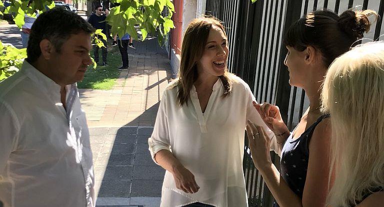 La mandataria bonaerense recorrió San Martín, acompañada por el ministro de Desarrollo Social de su gabinete, Santiago López Medrano, uno de los referentes de Cambiemos en ese distrito.
